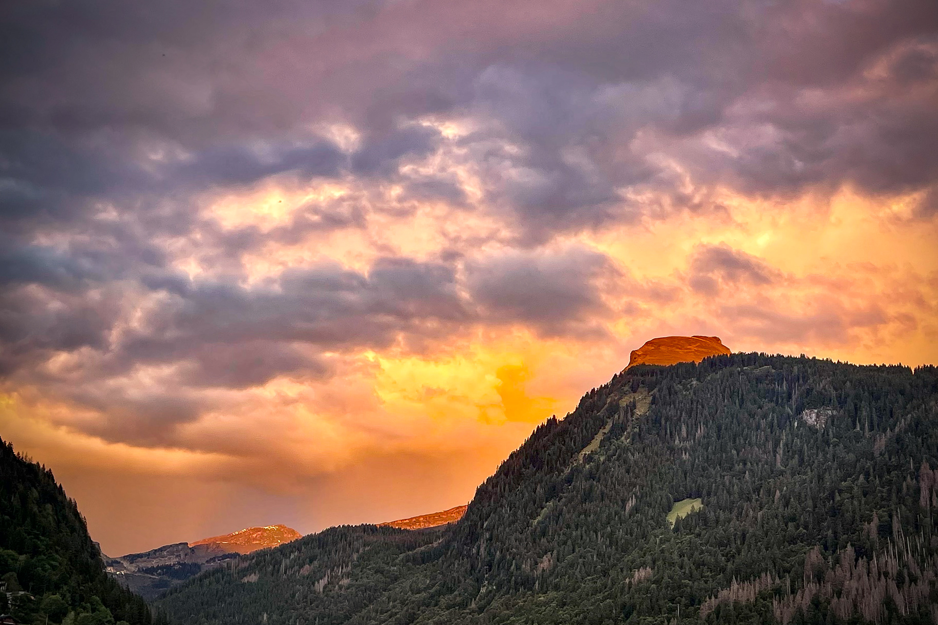 Sunset on the mountains around Morzine, Haute Savoie, France