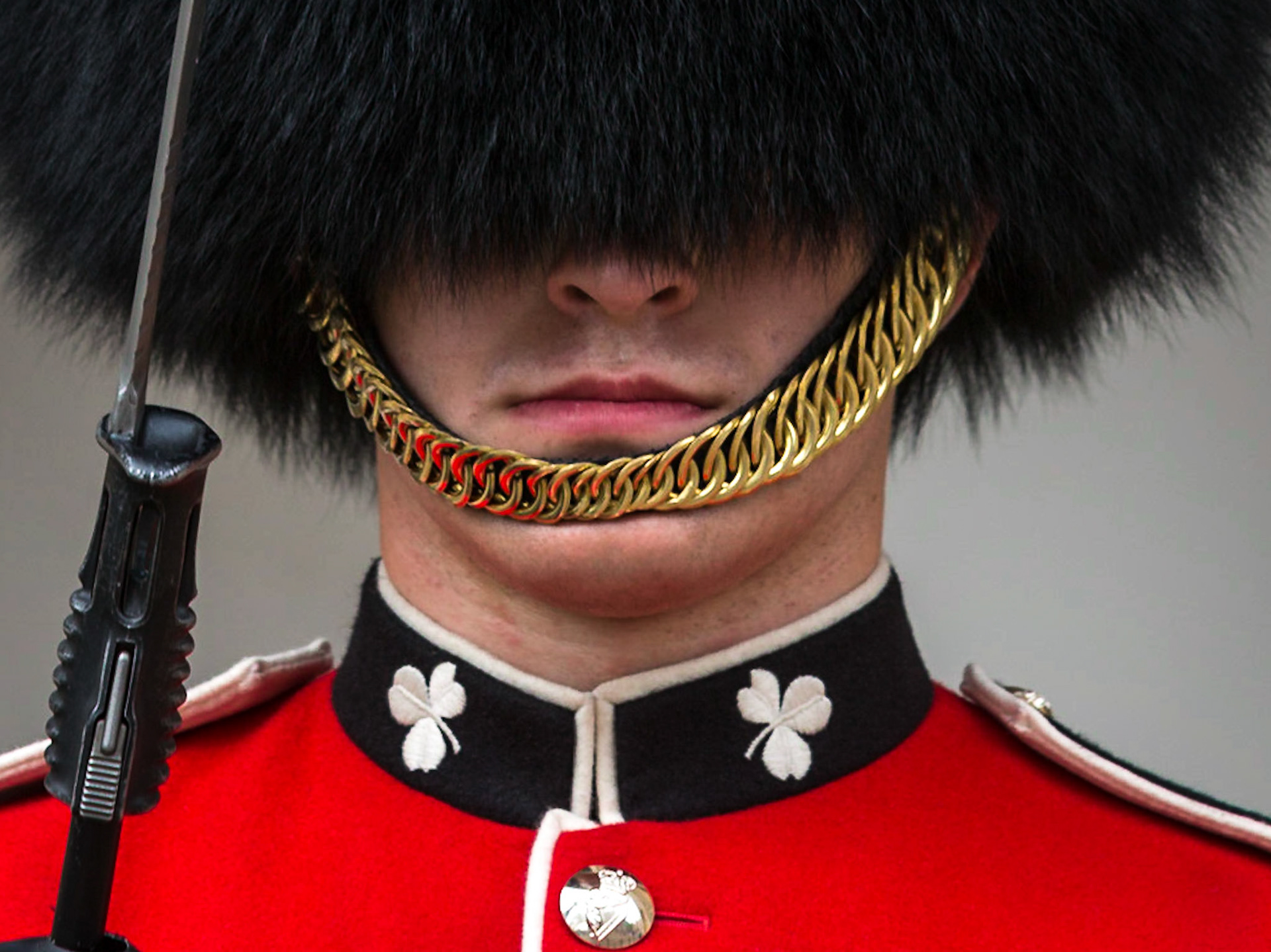 Close up of a Welsh Guardsman in Winter Order, Windsor Castle, Berkshire